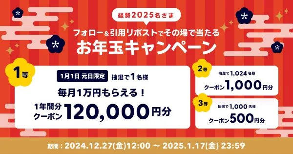 2025年1月1日(水)に参加していただいた方のなかから、1名に当たります。