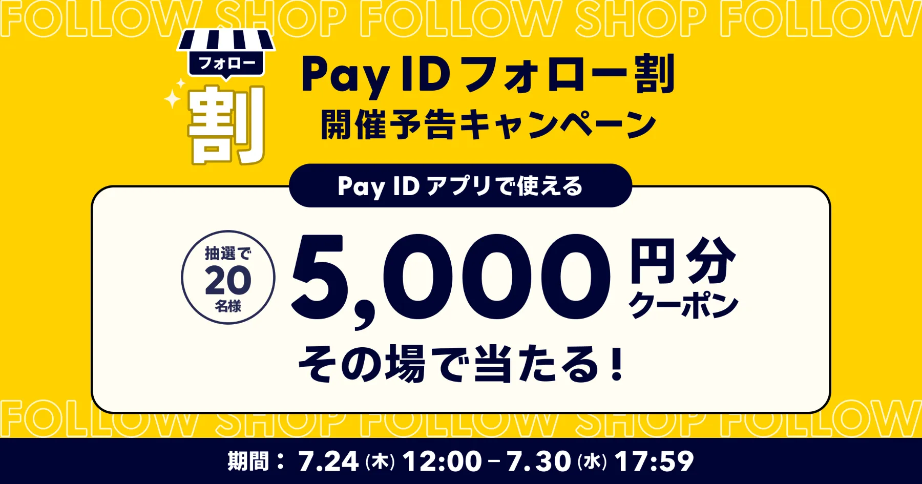 終了しました【5,000円分のクーポンがその場で当たる!】Pay IDフォロー割...