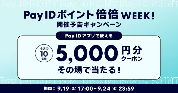 終了しました【5,000円分のクーポンがその場で当たる!】Pay ID ポイント...