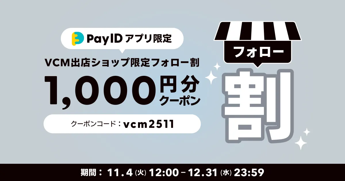 このたび、「Pay ID」が「VCM VINTAGE MARKET Vol.7」にグランドスポンサーとして参加することを記念し、「VCM VINTAGE MARKET Vol.7」参加ショップでのご購入限定で使えるクーポンを配布するキャンペーンを開催します。