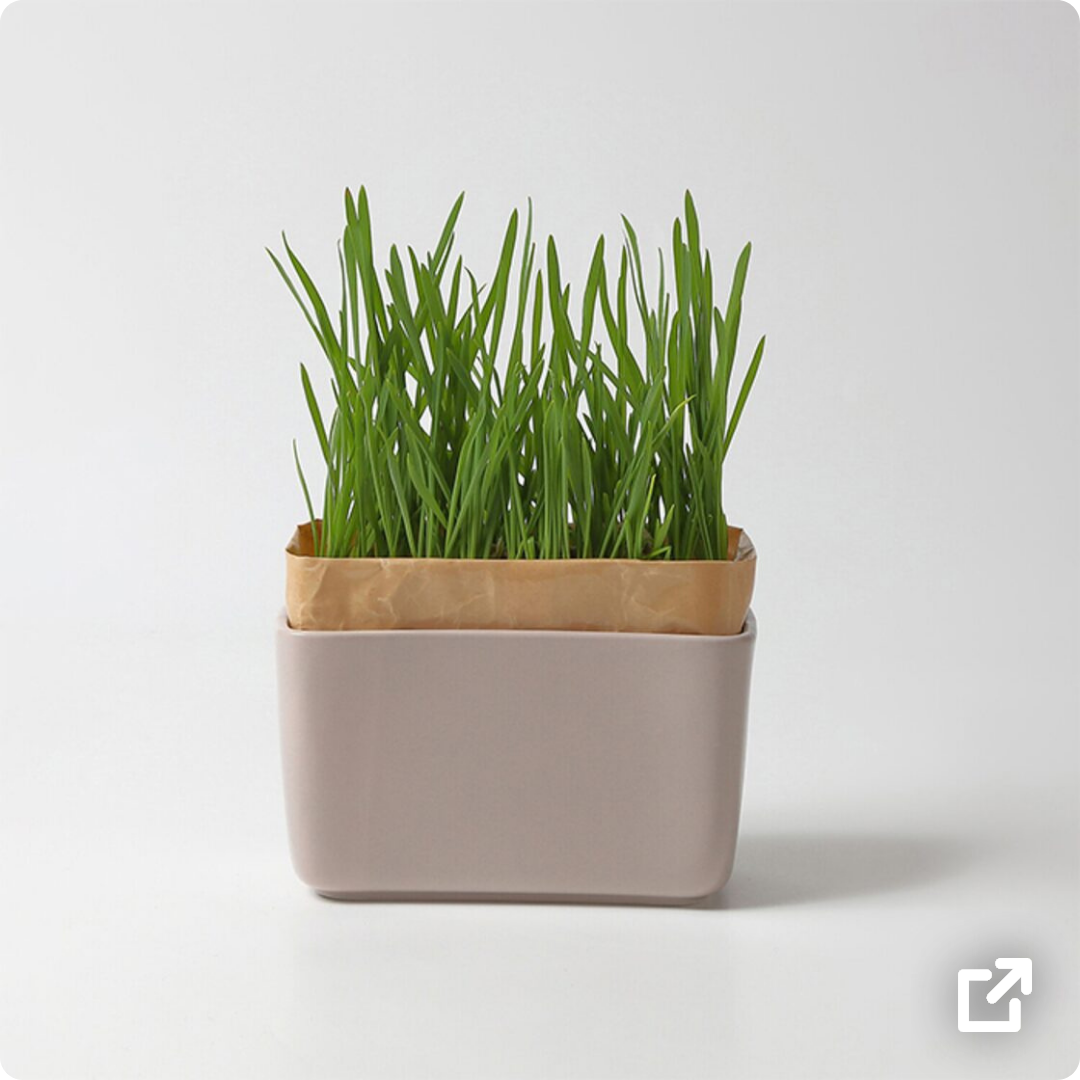 猫草を栽培できるキット。インテリアの邪魔をしない有田焼の器付き。