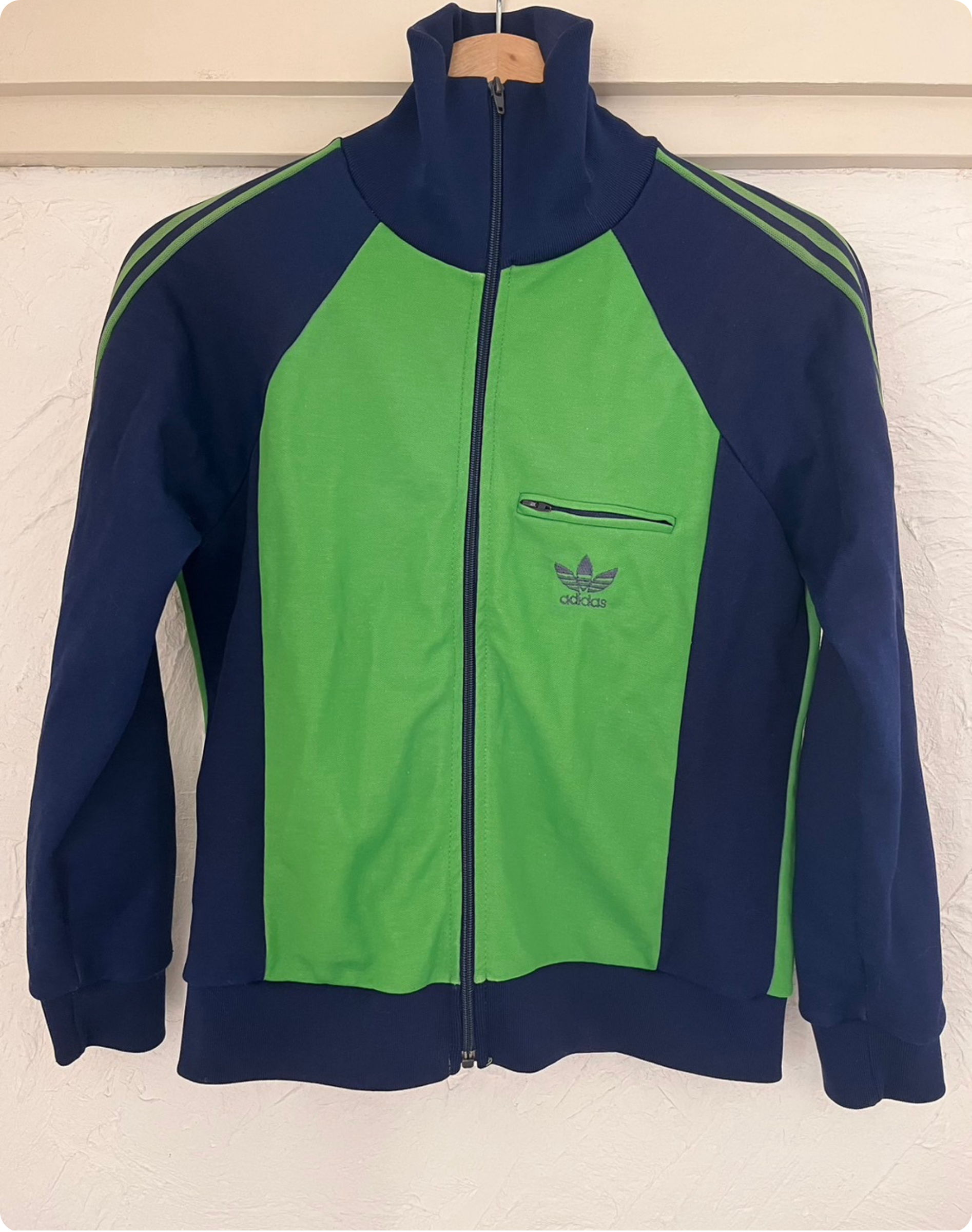 2、3年ほど前に下北沢の古着店で購入しました。店の隅の方にひっそりと置かれていたんですが、手に取った瞬間にサイズ感とカラーリングに一目惚れ。古着のスポーツアイテムって大きいサイズが多く、ジャストサイズを探すのは難しいんです。このジャージはサイズ感がレディースより少し小さめで、70〜80年代くらいの少し古い素材感も気に入っています。スポーツアイテムにガーリーなものを合わせるのが好きなので、フリルやスカートなどと合わせて着ることが多いです。