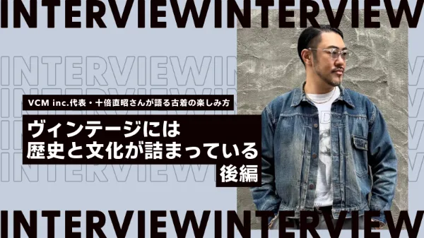 Pay IDがグランドスポンサーとして協賛する「VCM VINTAGE MARKET」は、日本最大級のヴィンテージの祭典。4月にはvol.6を開催予定です。回を重ねるごとに来場者が増え、今や全国の古着好き一万人以上が集まる一大イベントとなっています。そんな「VCM VINTAGE MARKET」を主催するVCM inc.の十倍直昭さんにインタビュー。後編となる今回は、古着が好きになったきっかけや、お気に入りのアイテムを教えていただきました。